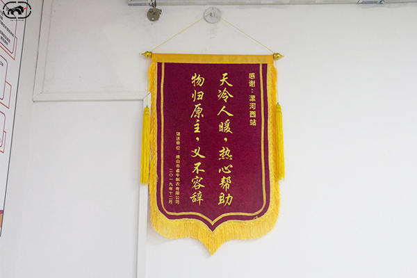 1、贈送漯河西站“物歸原主義不容辭,天冷人暖熱心幫助”錦旗一面;
