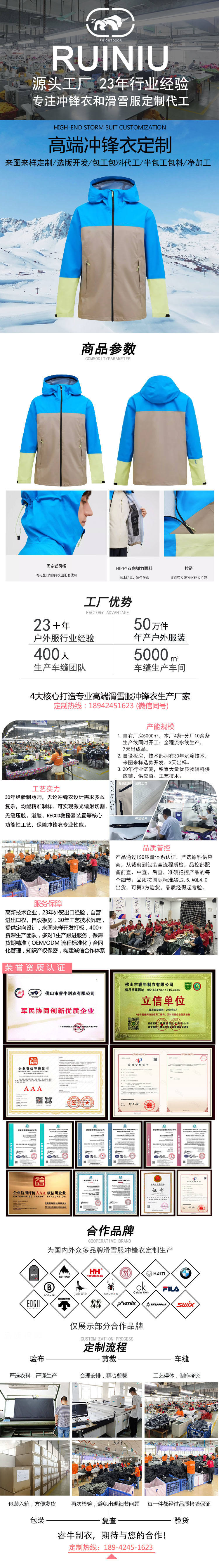 沖鋒衣工廠來圖來樣定制加工硬殼防水沖鋒衣